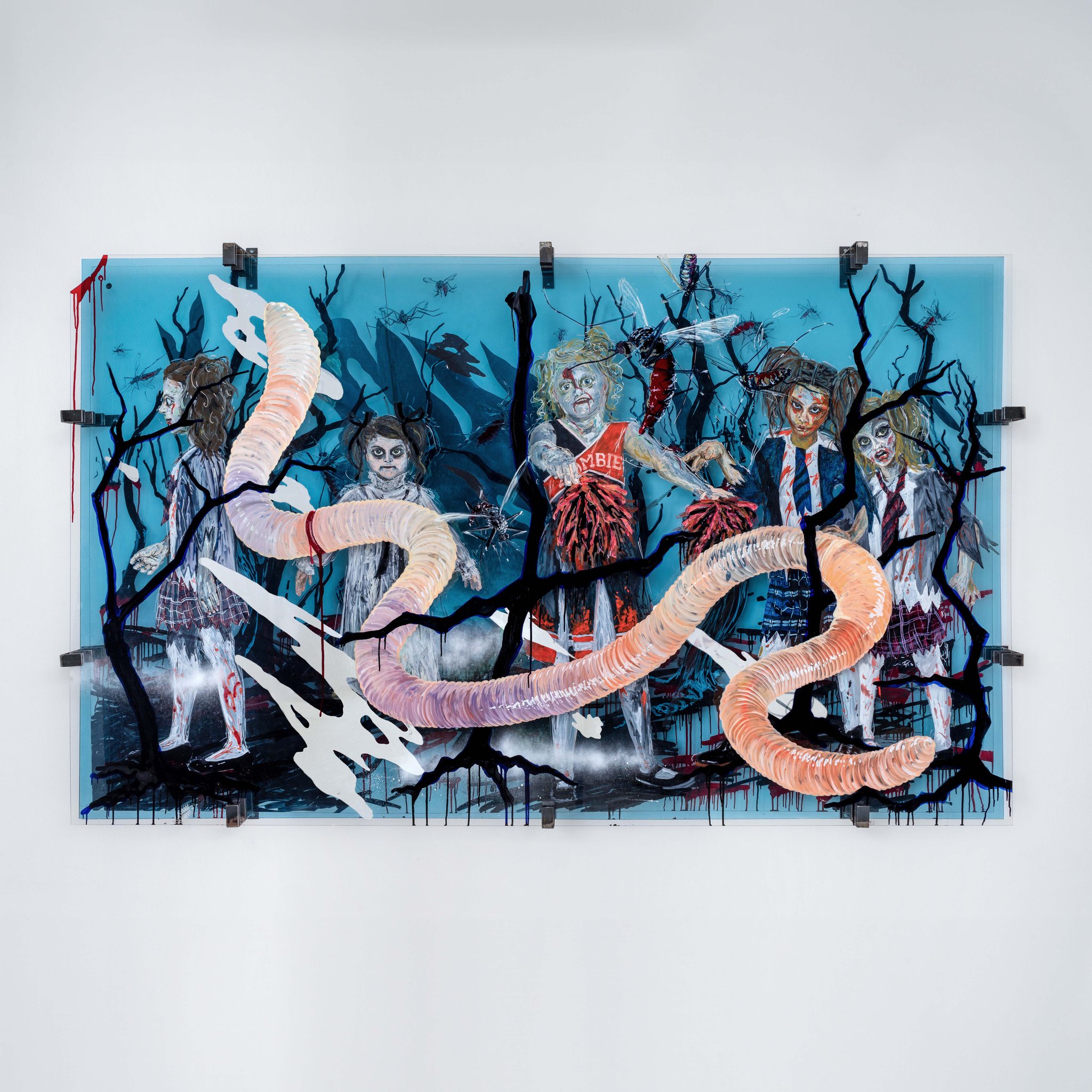 acrylic, ink, graphite and spy film on acrylic glass, steel