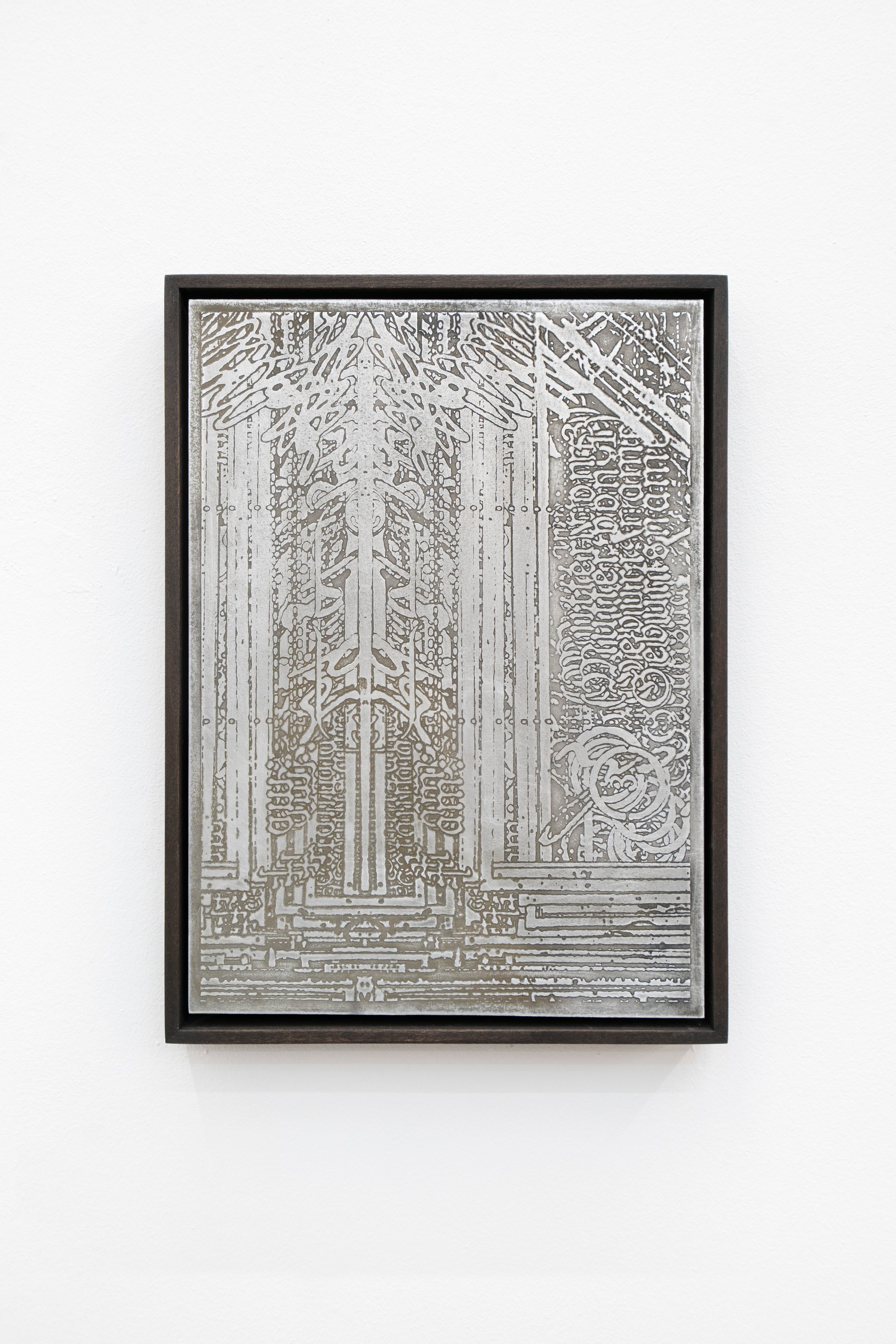 etching on aluminum, wooden frame